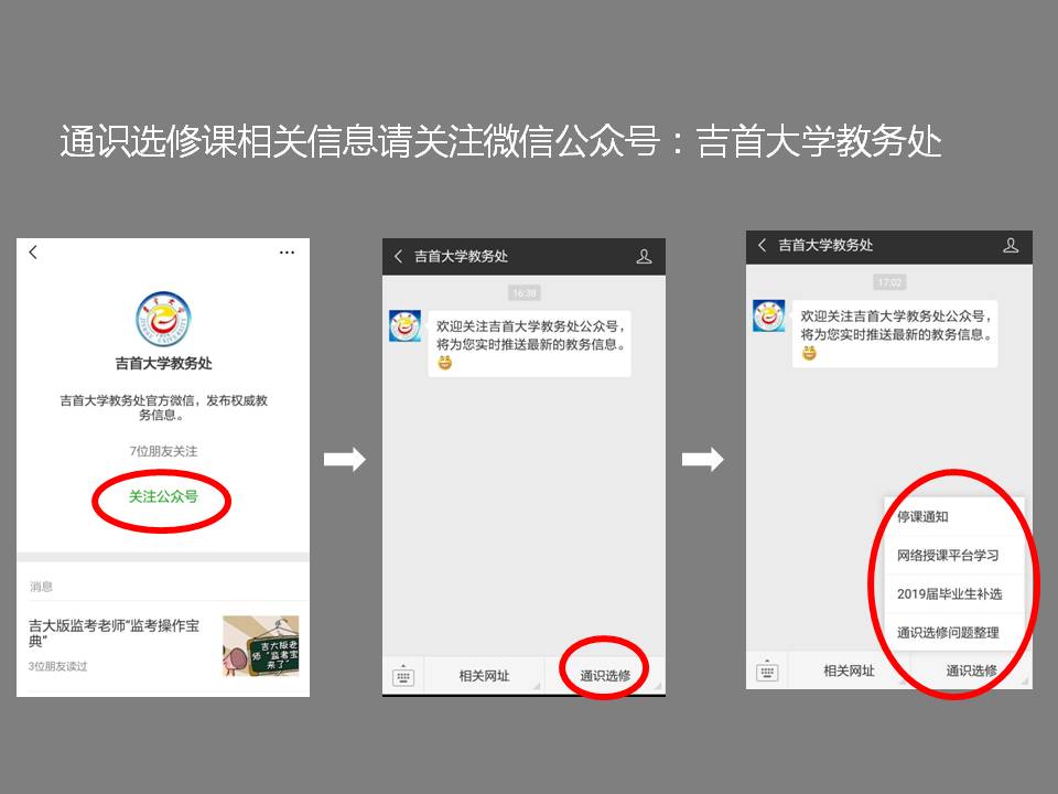 与通识选修课相关的停课通知会在微信公众号:吉首大学教务处,定期更新发布,请同学们关注公众号。