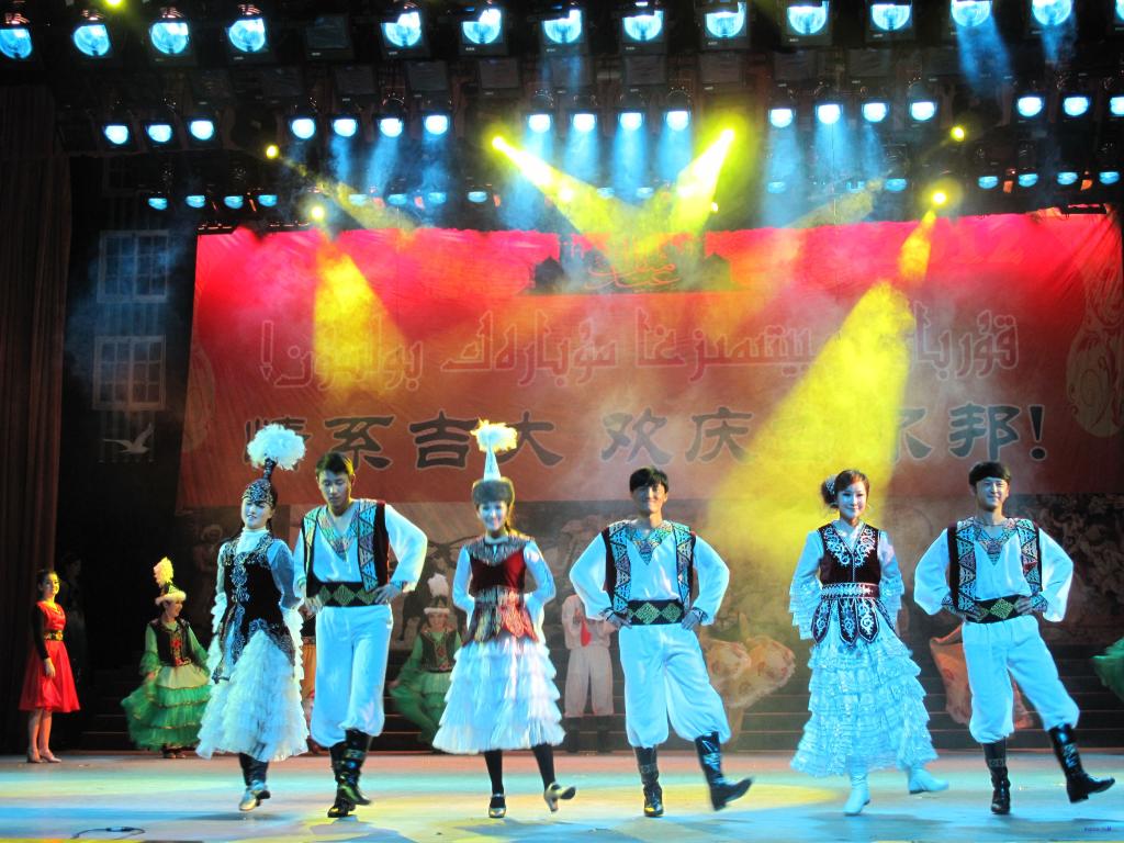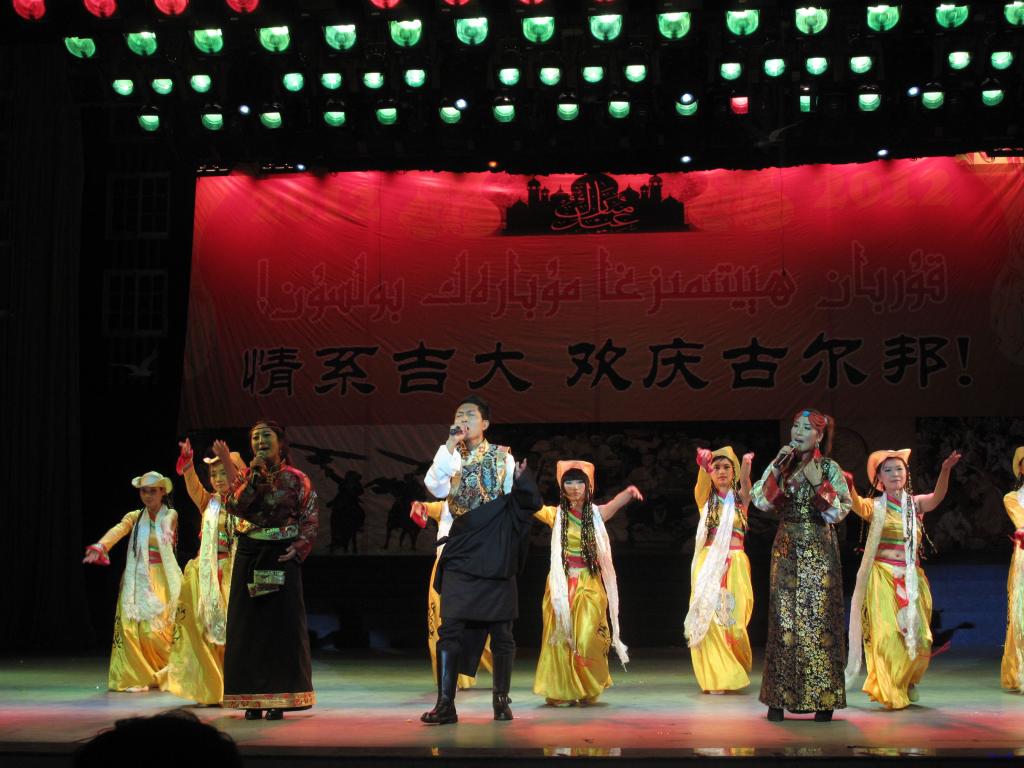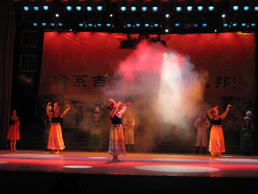 晚会分为“走进新疆”、“情系吉大”、“欢庆古尔邦”三个篇章,同学们上演了各具特色的民族歌舞、乐器、小品、T台秀等节目。特别是穆斯林同学们还来到观众席上与观众进行互动,优美的舞姿更是博得阵阵掌声与欢笑,观众连连叫好,晚会气氛达到最高潮。