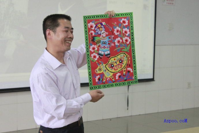 此次,谢志平老师除向学生展示了他在湖南省第五届剪纸艺术展获奖的作品《五彩湘西》外,还讲授了该获奖作品创作与构思的一些体会。他对同学们说,生活之中处处有美,要善于发现生活之美,要做生活的有心人,剪纸要有个人的创作特色。上课之前,田茂军教授代表吉首大学素质教育中心给谢志平老师颁发了素质教育课特聘教师的证书。