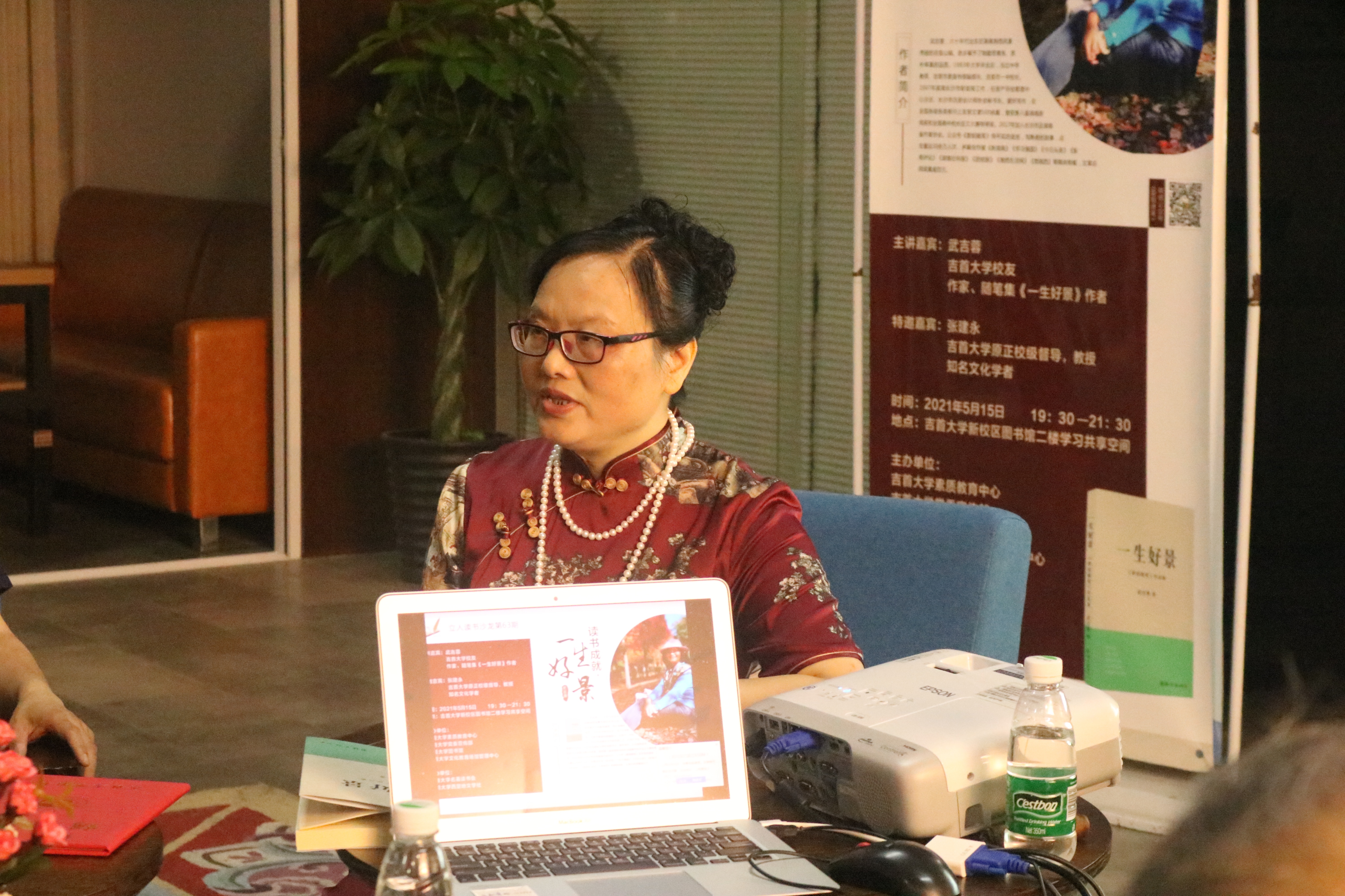 本网讯(通讯员 谭佳宇)5月15日晚,我校校友、新近出版随笔集《一生好景》的武吉蓉应邀做客“立人”读书沙龙,分享读书与人生感悟。原正校级督导、知名文化学者张建永教授担任特邀嘉宾。沙龙由名著读书会、西楚地文学社指导老师胡建文主持。